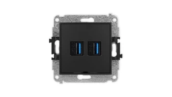 ICON Mechanizm gniazda podwójnego 2xUSB A-A 3.0, bez pola opisowego czarny mat 12IGUSBBO-6