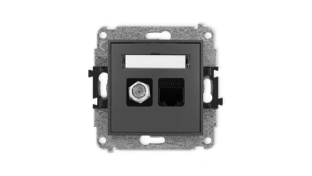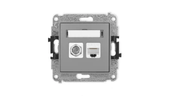 ICON Mechanizm gniazda antenowego poj. typu F (SAT) + gniazda komp. poj. 1xRJ45, kat. 6, 8-stykowy szary mat 27IGFK-3