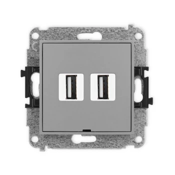 ICON Mechanizm gniazda podwójnego 2xUSB A-A 2.0, bez pola opisowego szary mat 27IGUSBBO-2