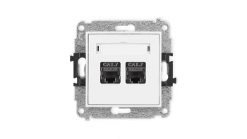 ICON Mechanizm gniazda komputerowego podwójnego 2xRJ45, kat. 7, ekranowane, 8-stykowy biały mat 25IGK-10