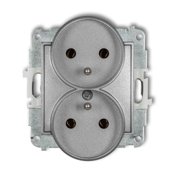 ICON Mechanizm gniazda multimedialnego podwójnego bez modułu (standard Keystone) srebrny metalik 7IGM-2P