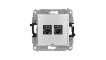 ICON Mechanizm gniazda komputerowego podwójnego 2xRJ45, kat. 6, 8-stykowy, bez pola opisowego srebrny metalik 7IGKBO-4
