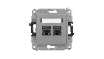 ICON Mechanizm gniazda komputerowego podwójnego 2xRJ45, kat. 7, ekranowane, 8-stykowy szary mat 27IGK-10