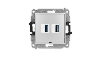 ICON Mechanizm gniazda podwójnego 2xUSB A-A 3.0, bez pola opisowego srebrny metalik 7IGUSBBO-6