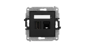 ICON Mechanizm gniazda pojedynczego HDMI 2.0 + gniazda komp. poj. 1xRJ45, kat. 5e, 8-stykowy czarny mat 12IGHK