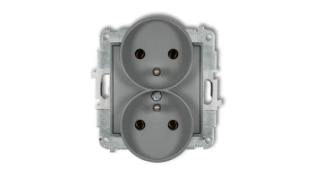 ICON Mechanizm gniazda podwójnego do ramki z uziemieniem 2x(2P+Z) (bez przesłon torów prądowych) szary mat 27IGPR-2z