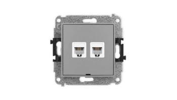 ICON Mechanizm gniazda telefonicznego podwójnego 2xRJ11, 4-stykowy, beznarzędziowe, bez pola opisowego szary mat 27IGTBO-2