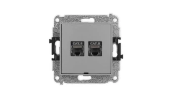ICON Mechanizm gniazda komputerowego podwójnego 2xRJ45, kat. 8, ekranowane, 8-stykowy, bez pola opisowego szary mat 27IGKBO-12