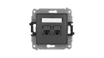 ICON Mechanizm gniazda komputerowego podwójnego 2xRJ45, kat. 8, ekranowane, 8-stykowy grafitowy mat 28IGK-12