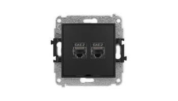 ICON Mechanizm gniazda komputerowego podwójnego 2xRJ45, kat. 7, ekranowane, 8-stykowy, bez pola opisowego czarny mat 12IGKBO-10