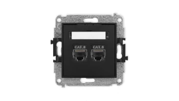 ICON Mechanizm gniazda komputerowego podwójnego 2xRJ45, kat. 8, ekranowane, 8-stykowy czarny mat 12IGK-12