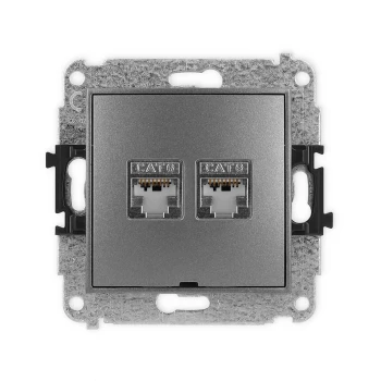 ICON Mechanizm gniazda komputerowego podwójnego 2xRJ45, kat. 6, 8-stykowy, bez pola opisowego grafitowy 11IGKBO-4