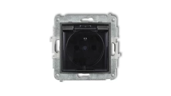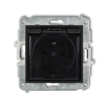 ICON Mechanizm gniazda bryzgoszczelnego z uziemieniem 2P+Z (klapka dymna, przesłony torów prądowych) czarny mat 12IGPB-1zdp