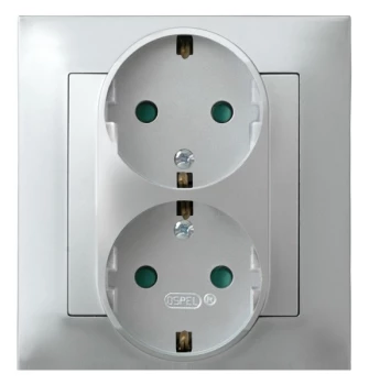 IMPRESJA Gniazdo podwójne z/u Schuko z przesłonami srebrne GP-2YSP/18