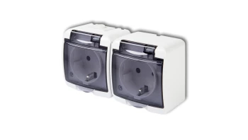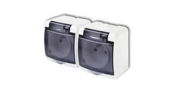 JUNIOR Gniazdo podwójne z/u (klapka biała) biały IP54 GHE-2