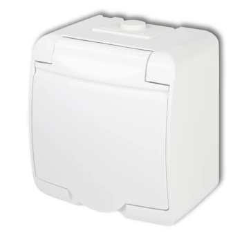 JUNIOR Gniazdo pojedyncze z/u (klapka biała) biały IP54 GHE-1