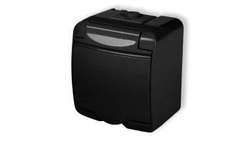 Gniazdo hermetyczne podwójne z uziemieniem Karlik Junior 12GHE-2D (klapka dymna) 2x(2P+Z) bez przesłon czarne