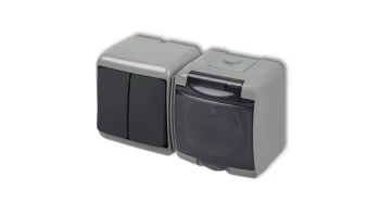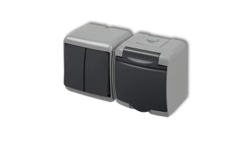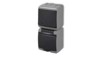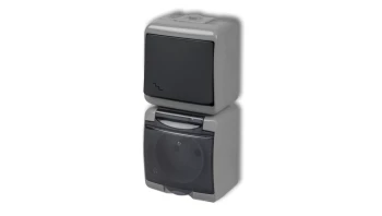 JUNIOR Łącznik schodowy z gniazdem hermetycznym (klapka grafitowa) popielaty / grafitowy 30WGHP-3p