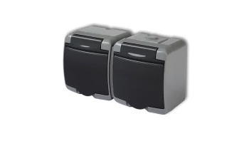 JUNIOR Gniazdo podwójne z/u (klapka grafitowa) popielaty / grafitowy IP54 30GHE-2