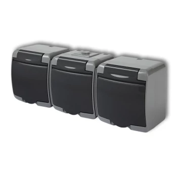JUNIOR Gniazdo potrójne 3x(z/u) (klapka grafitowa) popielaty / grafitowy IP54 30GHE-3