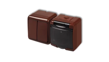 JUNIOR Łącznik schodowy + gniazdo hermetyczne (klapka brązowa) brązowy 4WGHH-3