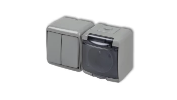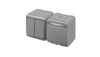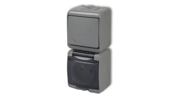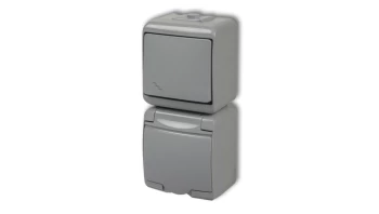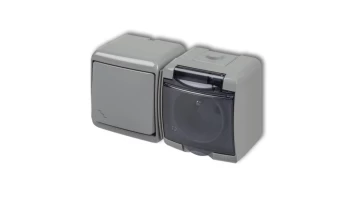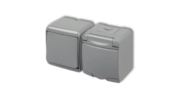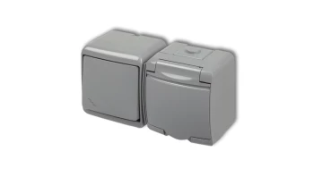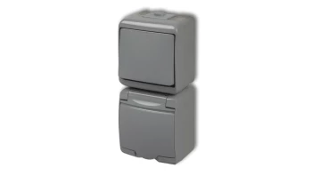 JUNIOR Łącznik schodowy + gniazdo hermetyczne (klapka dymna) popielaty 10WGHP-3d