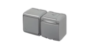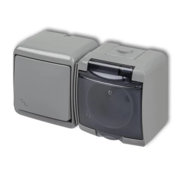JUNIOR Łącznik jednobiegunowy + gniazdo hermetyczne (klapka popielata) popielaty 10WGHP-1