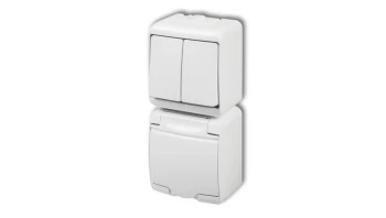 JUNIOR Łącznik schodowy + gniazdo hermetyczne (klapka dymna) popielaty 10WGHP-3dp