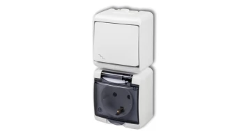 JUNIOR Łącznik jednobiegunowy + gniazdo hermetyczne (klapka popielata) popielaty 10WGHP-1p