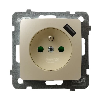 KARO MODUŁ ECRU PERŁOWE GNIAZDO 1X Z/U Z PRZESŁONAMI ZACISKI SPRĘŻYNOWE + ŁADOWARKA USB 16A 250V