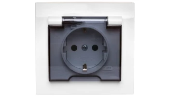 KIER Gniazdo bryzgoszczelne z/u IP44 z przesłonami klapka przezroczysta białe GPH-1WZP/00/d