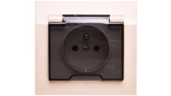 KIER Gniazdo bryzgoszczelne z/u IP44 z przesłonami klapka przezroczysta beżowe GPH-1WZP/01/d