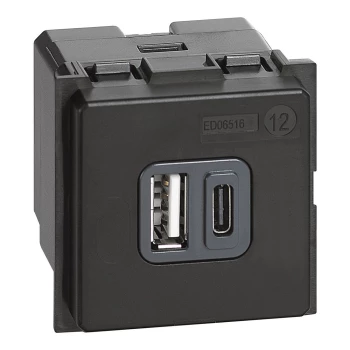 LIVING NOW - GNIAZDO PŁASKIE 2P+Z + USB C - 2 MODUŁY - BIEL