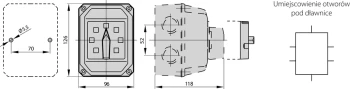 ŁK63-2.8211\OB2ZC ŁĄCZNIK KRZYWKOWY 63A, ROZŁĄCZNIK 0-1 (3 - BIEGUNOWY), W OBUDOWIE OB2 Z CZOŁEM ZAM