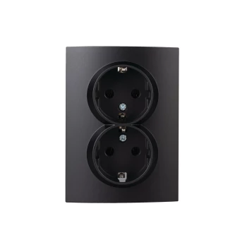 LOGI Gniazdo zasilające podwójne francuskie kompletne z ochroną styków 021255142 czarny mat 33602
