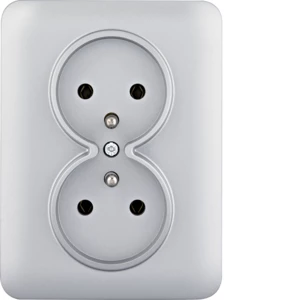 Lumina Gniazdo zasilające z uziemieniem podwójne kompletne 16A/250VAC srebrne WL1222