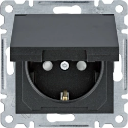 Lumina Gniazdo SCHUKO z pokrywą i przesłoną styków czarne WL1163