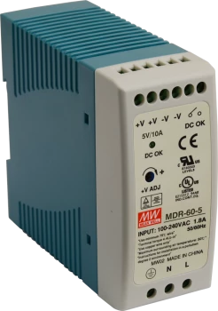 MDR 5V/60W/10A ZASILACZ NA SZYNĘ DIN 10A/5VDC UOUT= 5V÷6V 40 X 90 X 100