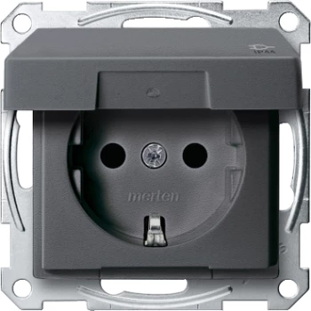 Merten System M Gniazdo pojedyncze SCHUKO IP44 z przesłonami i klapką antracyt MTN2414-0414