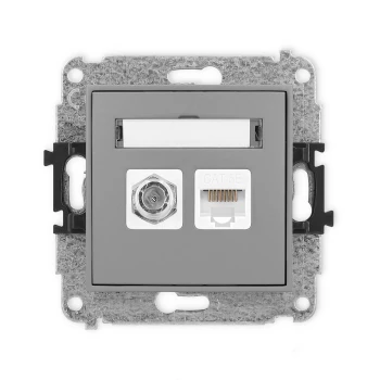 MINI Gniazdo antenowe typu F (SAT) + gniazda komputerowe 1xRJ45 kat. 5e szary mat 27MGFK-1