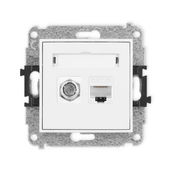 MINI Mechanizm gniazda antenowego poj. typu F (SAT) + gniazda komp. poj. 1xRJ45, kat. 6, 8-stykowy biały mat 25MGFK-3