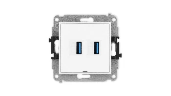 MINI Mechanizm gniazda podwójnego 2xUSB A-A 3.0, bez pola opisowego biały mat 25MGUSBBO-6