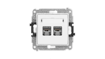 MINI Mechanizm gniazda komputerowego podwójnego 2xRJ45, kat. 6, ekranowane, 8-stykowy biały mat 25MGK-6
