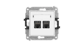 MINI Mechanizm gniazda komputerowego podwójnego 2xRJ45, kat. 8, ekranowane, 8-stykowy biały mat 25MGK-12