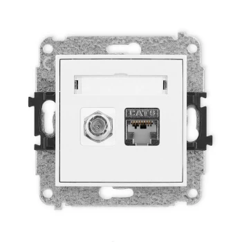 MINI Mechanizm gniazda antenowego poj. typu F (SAT) + gniazda komp. poj. 1xRJ45, kat. 5e, 8-stykowy biały mat 25MGFK-1