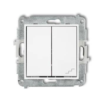MINI Mechanizm łącznika jednobiegunowego ze schodowym (dwa klawisze bez piktogramów, osobne zasilanie) biały mat 25MWP-10.21