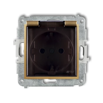 MINI Mechanizm gniazda bryzgoszczelnego z uziemieniem SCHUKO 2P+Z (klapka dymna, przesłony torów prądowych) złoty 29MGPB-1sdp
