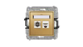 MINI Mechanizm gniazda antenowego poj. typu F (SAT) + gniazda komp. poj. 1xRJ45, kat. 6, 8-stykowy złoty 29MGFK-3