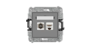 MINI Mechanizm gniazda antenowego poj. typu F (SAT) + gniazda komp. poj. 1xRJ45, kat. 6, 8-stykowy szary mat 27MGFK-3