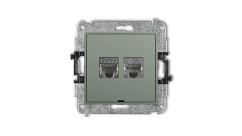 MINI Mechanizm gniazda antenowego poj. typu F (SAT) + gniazda komp. 1xRJ45, kat. 5e, 8-stykowy, bez opisu szałwiowy 61MGFKBO-1